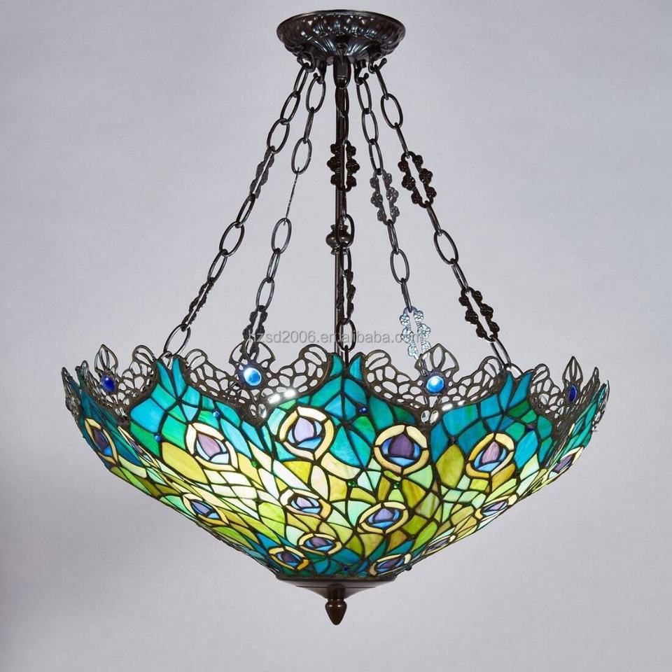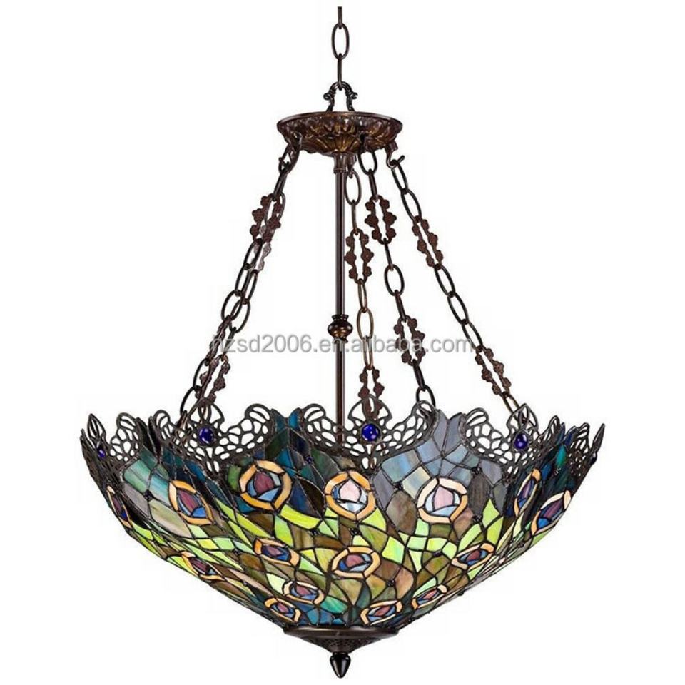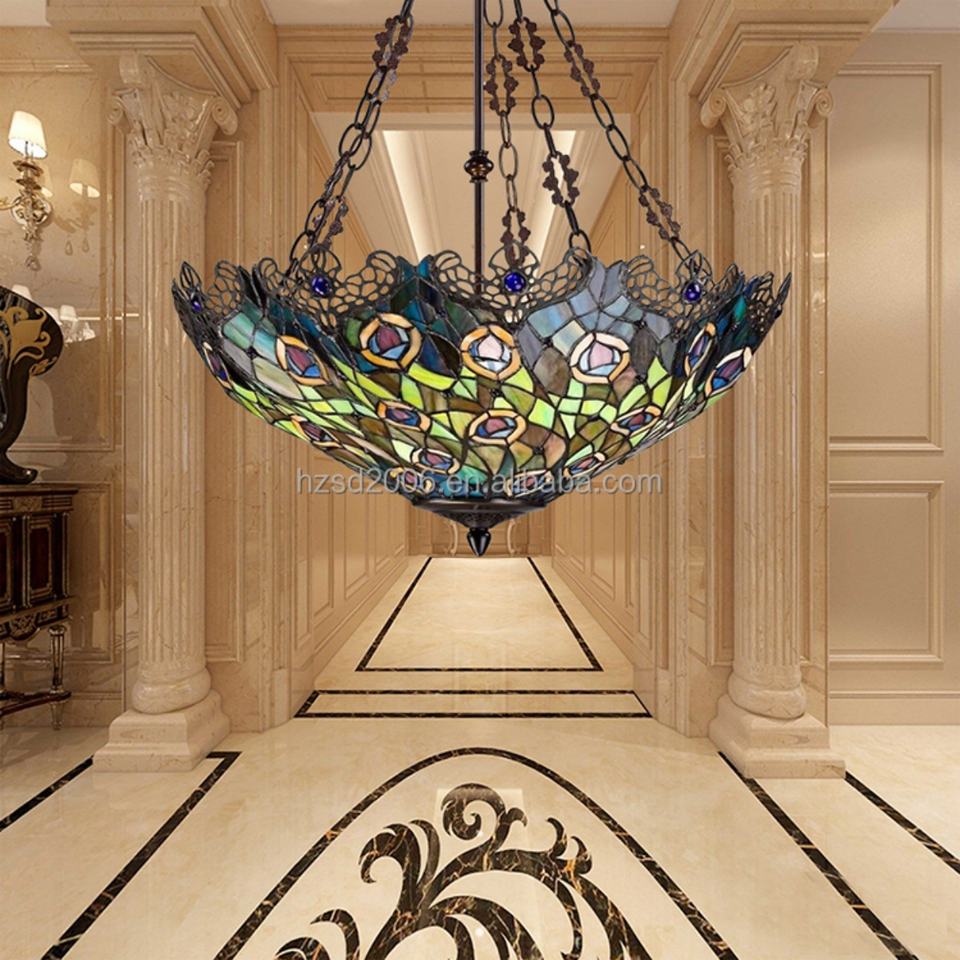 Lampe suspendue de style Tiffany, design queue de paon, 22 pouces, style baroque classique européen, LED, poudre, pour salon, chambre à coucher