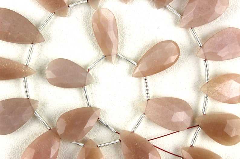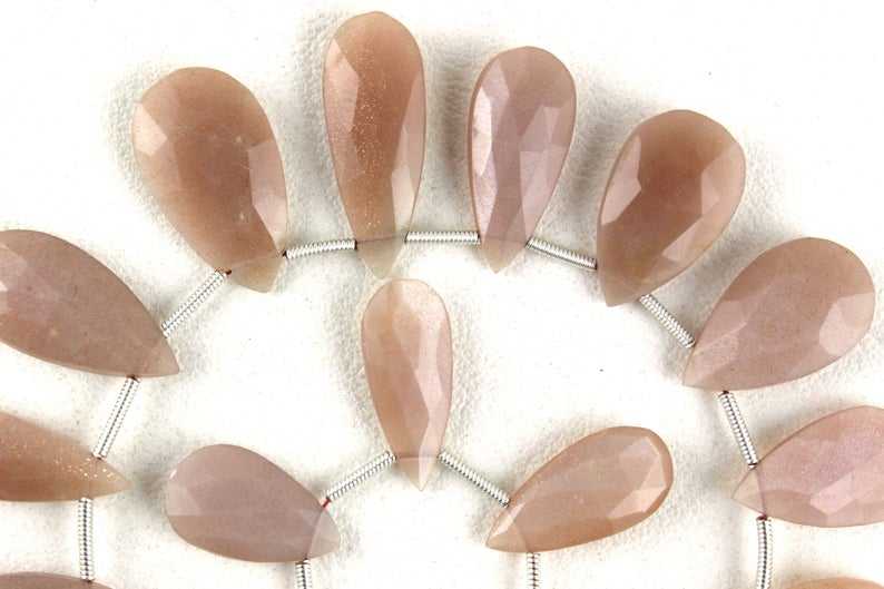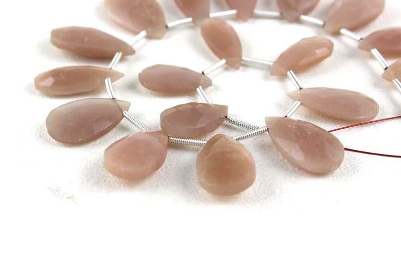 22 pièces perles en forme de poire à facettes en pierre de lune pêche naturelle bijoux briolette semi-précieuses écologiques avec de vraies pierres