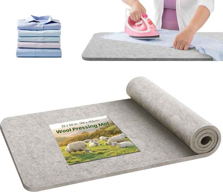 Tapis de pressage en laine 22" x 60" pour le quilting, tapis de repassage portable en laine, housse de planche à repasser 100% laine feutrée pour les quilteurs et projets de couture