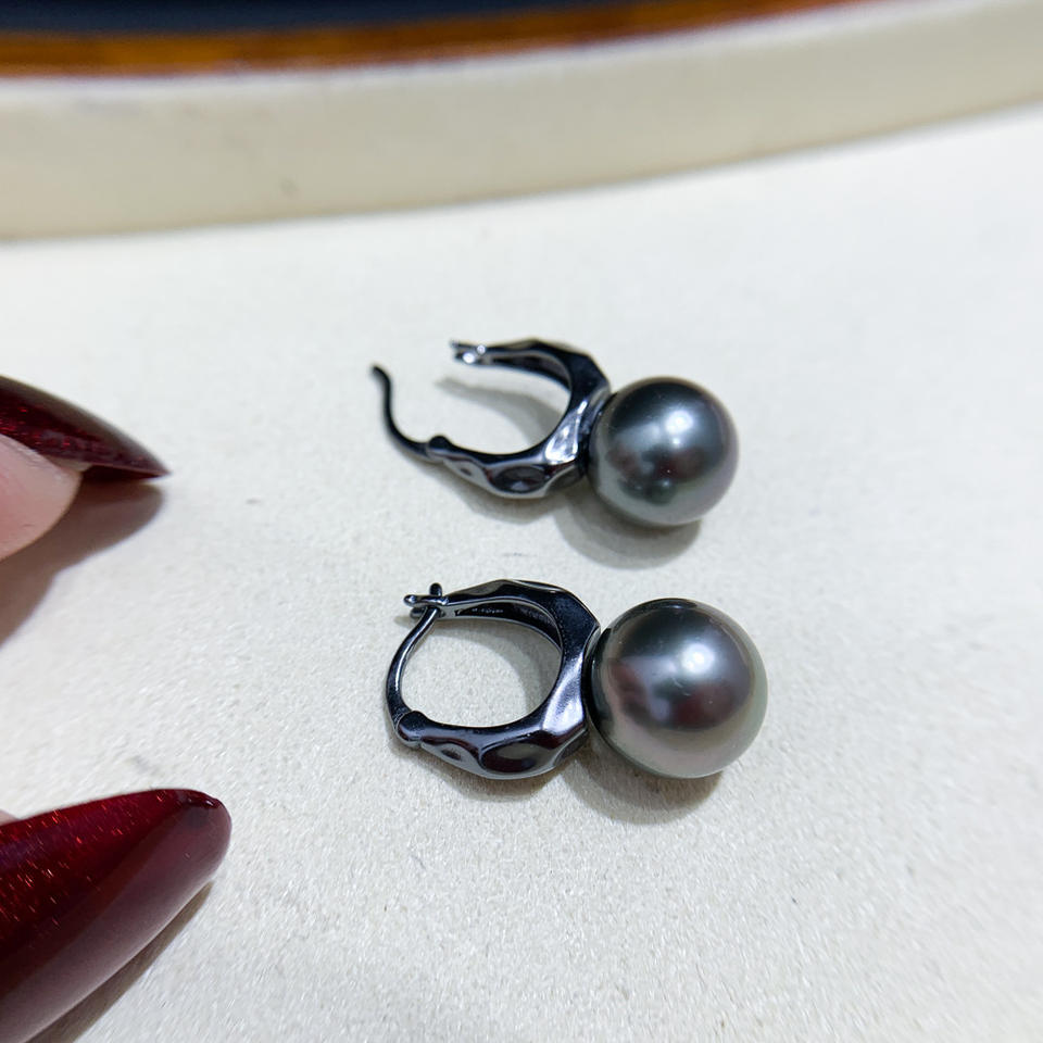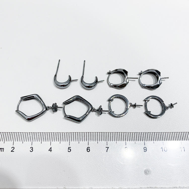 22071DIY Pearl Accessories S925 Silver Earnail Empty Tray Black & Silver Jewelry Earrings with 9-15mm Round Beads