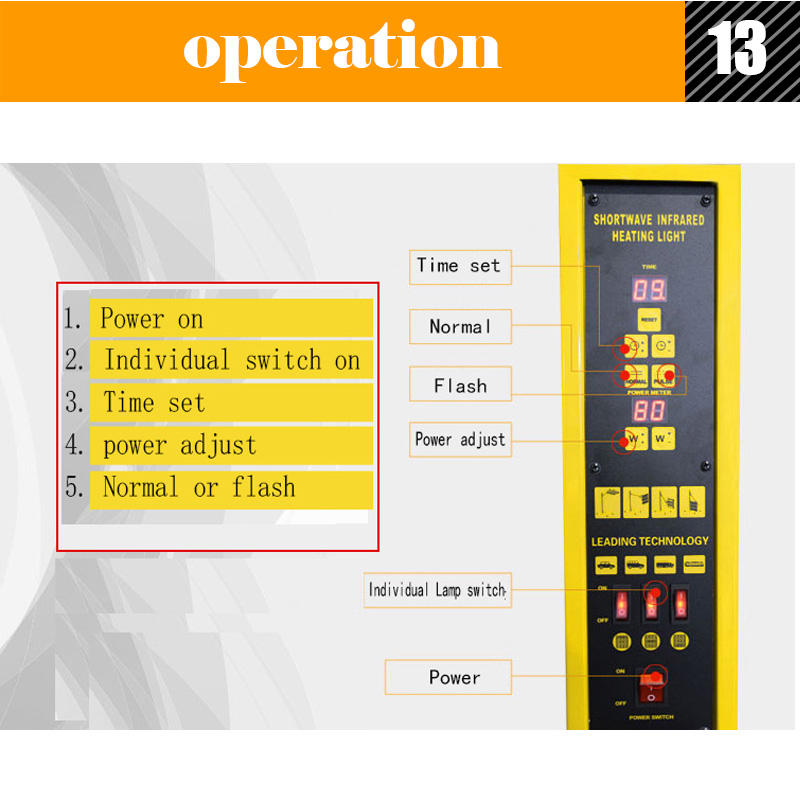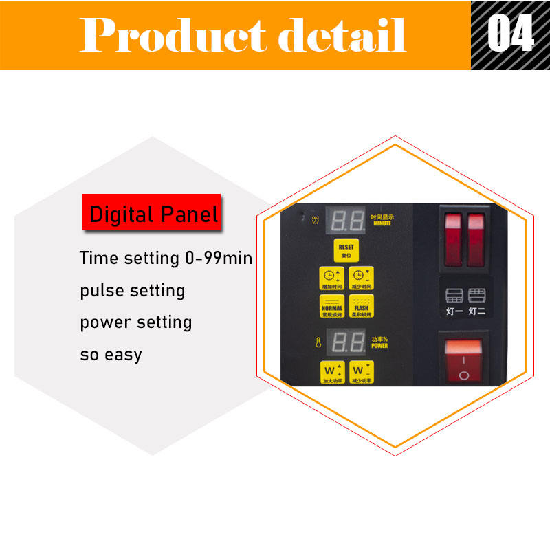 Lampe de traitement de peinture infrarouge à panneau numérique 220V avec deux ampoules