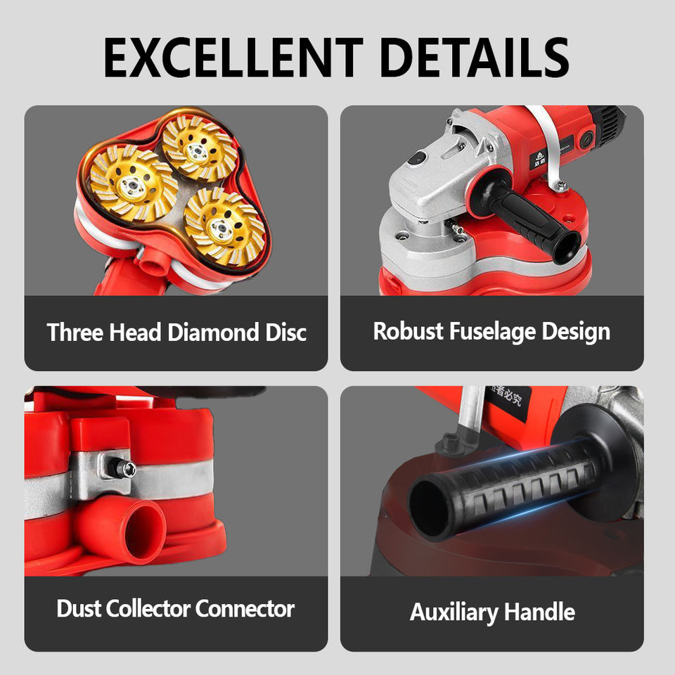Machine à poncer sans poussière 220V, ponceuse de sol, mini meuleuse à béton portative, meuleuse à béton à trois têtes, polisseuse