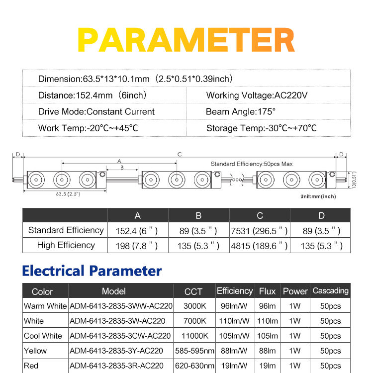 Nom du produit:Module LED 3 LED Injection 2835 110V 220V pour éclairage publicitaire