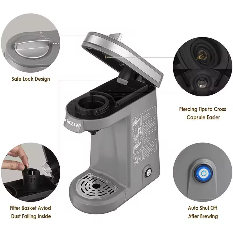 Cafetière électrique à service unique en acier inoxydable 220V pour capsule à dosettes avec réservoir d'eau intégré de 12 onces Cafetière portable