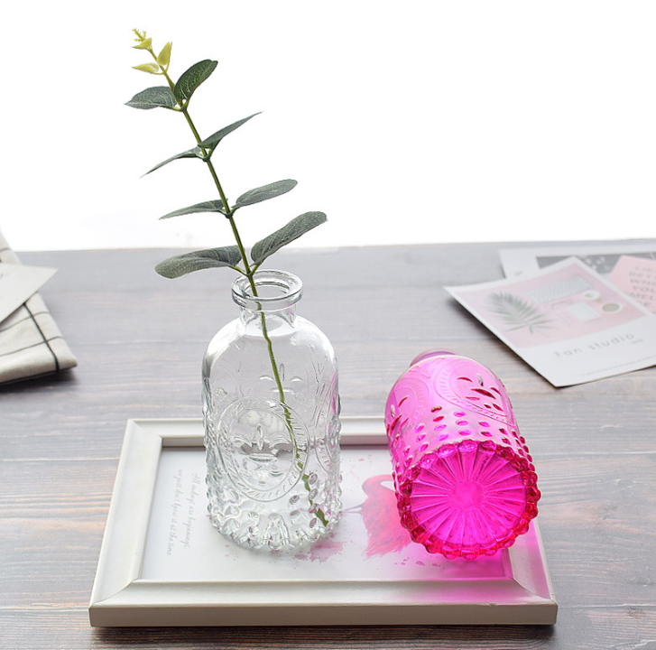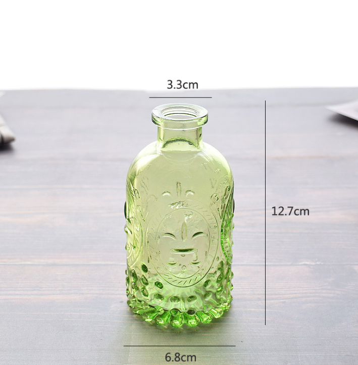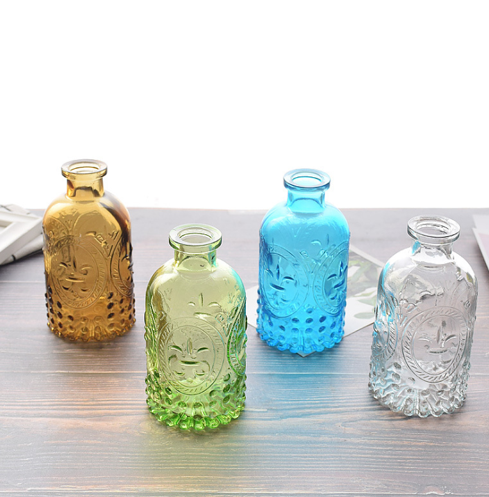 Bouteille en verre pour petite bouche, bouteille décorative volatile en relief sans fumée bouteille en verre transparent de tournesol