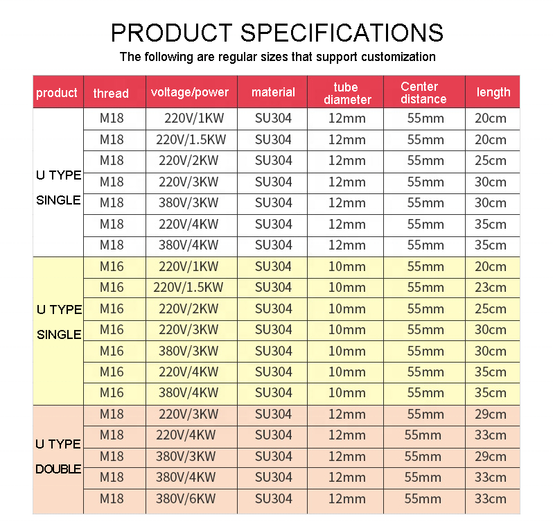 Nom du produit:Chauffage électrique tubulaire à air Élément chauffant industriel en acier inoxydable