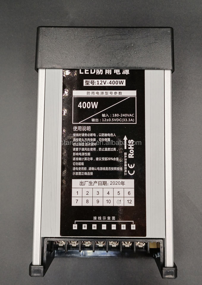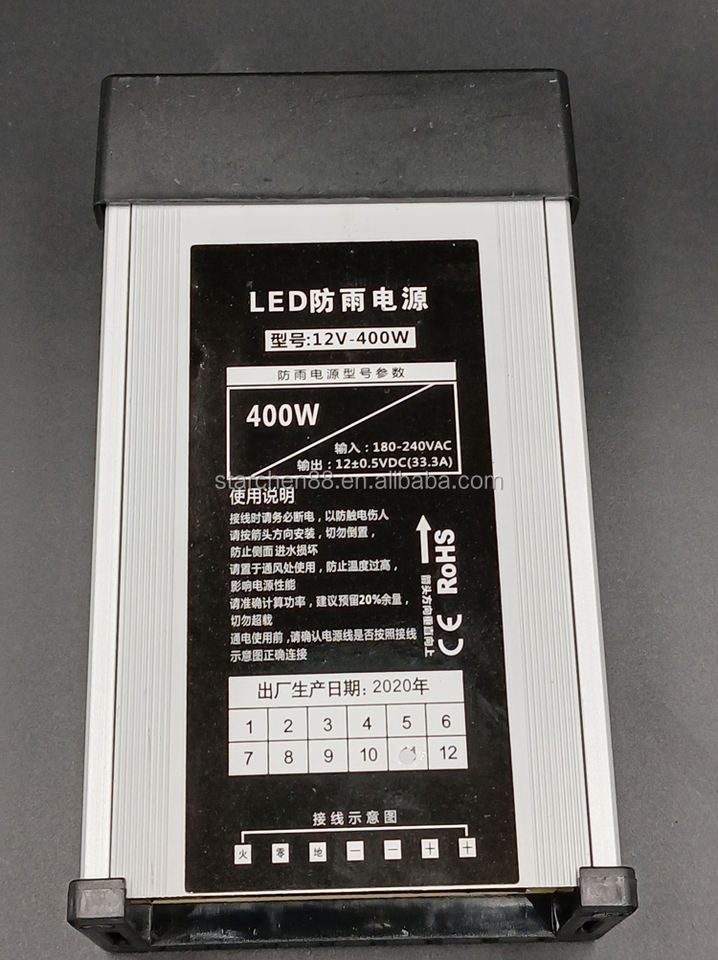 Transformateur 220v Ac-dc 12v pour lumières IP44 33.3A Led étanche à la pluie 400w 12v Alimentation électrique