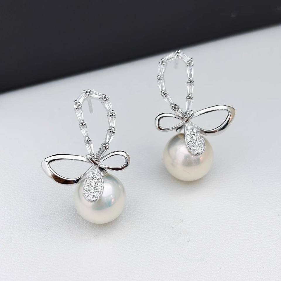 22376DIY S925 Silver Stud Earrings Fashion Accessories with 9-15mm Circle Empty Bracket Bow and Ear Nails DIY Pearl Accessory