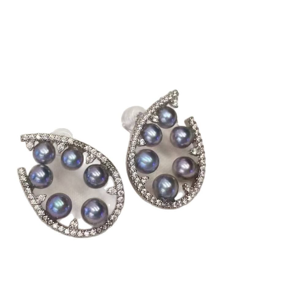 22599 DIY Pearl Accessories S925 Silver Ear Nails Multiple Beads Silver Jewelry Earhook 3-5mm Beads Empty Crystal Earrings