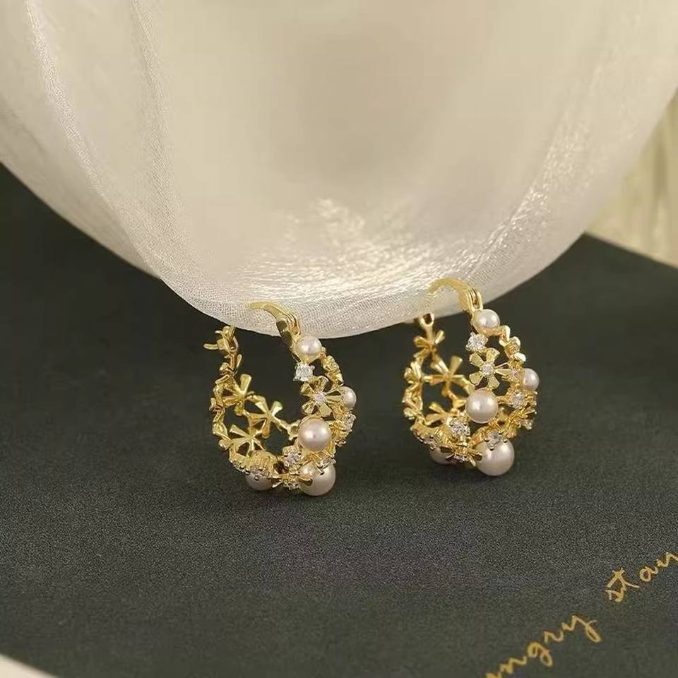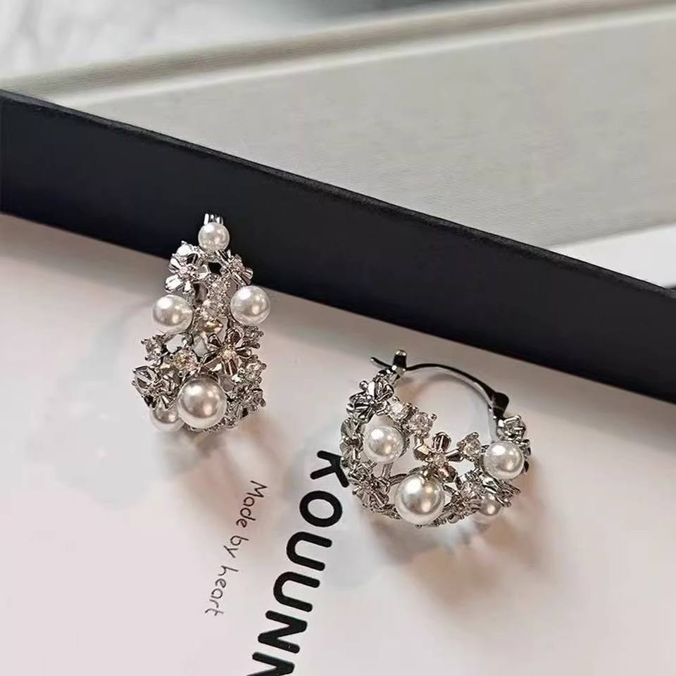 22622 DIY S925 Silver Pearl Earrings Hollow Support Multiple Bead Silver Jewelry with 3-6mm Beads Accessory Earnail