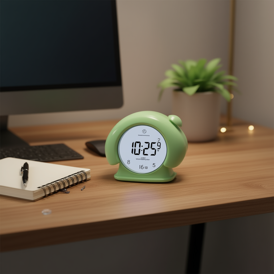 Réveil numérique portable à LED avec rétroéclairage pour le bureau et les voyages, fonctionne sur piles, design ovale moderne en plastique, mouvement à quartz