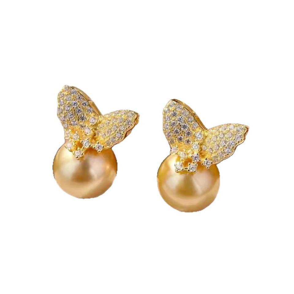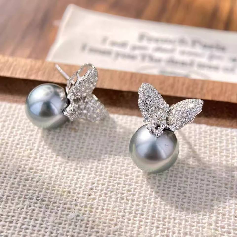 Boucles d'oreilles clous en argent S925 WENCHI modèle 10964 22655DIY, accessoires en perles, perles de 8-10 mm, support vide, design papillon tendance