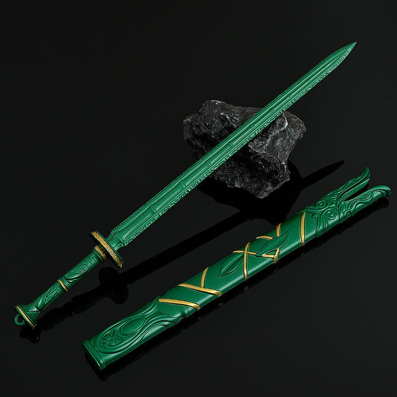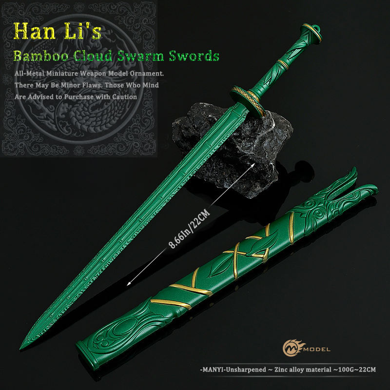 22CM Anime Xianxia Han Li's Green Bamboo Sword Full Metal Zinc Alloy Replica Collectible Desk Decor Fantasy Weapon Model