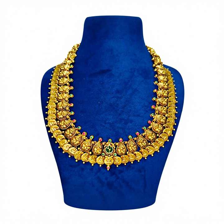 Collier de temple traditionnel indien du sud en or massif 22 carats, modèle Lakshmi Kasu Mala classique, fait main, avec pièces de monnaie dédiées à la déesse, pour mariages