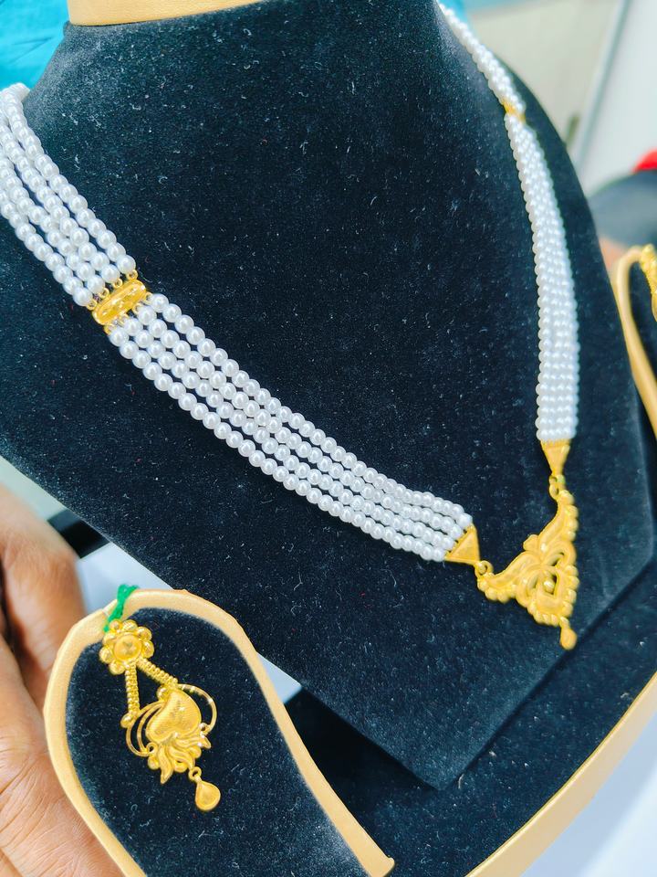Ensemble de collier en or massif 22 carats avec perles, quatre rangs de perles blanches, pendentif floral, bijoux pour femmes pour mariage, fiançailles, fête