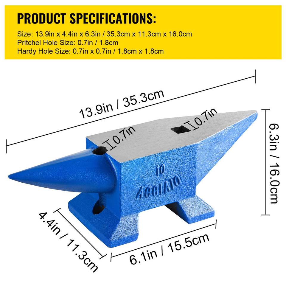 Ensemble de forge de blacksmith avec enclume à corne unique de 22 lb, outils en acier et enclume à trou carré robuste, à vendre