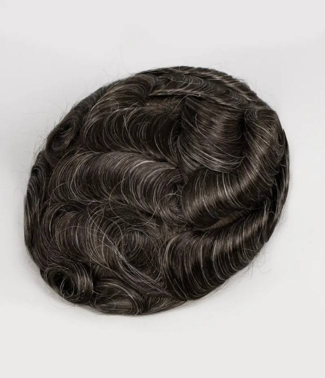22MM Curly Men's Wig Skin Base Human Hair Toupee Replacement System #1B Color 8x10 Inch Human Hair Wig for Men