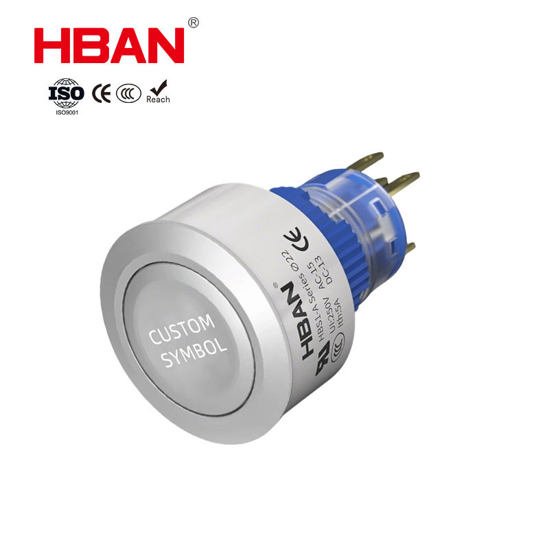 Interrupteur à bouton-poussoir en plastique de 22 mm avec indicateur LED, étanche IP65, 5A 250V, interrupteur électronique, borne à broches plates 1NO1NC
