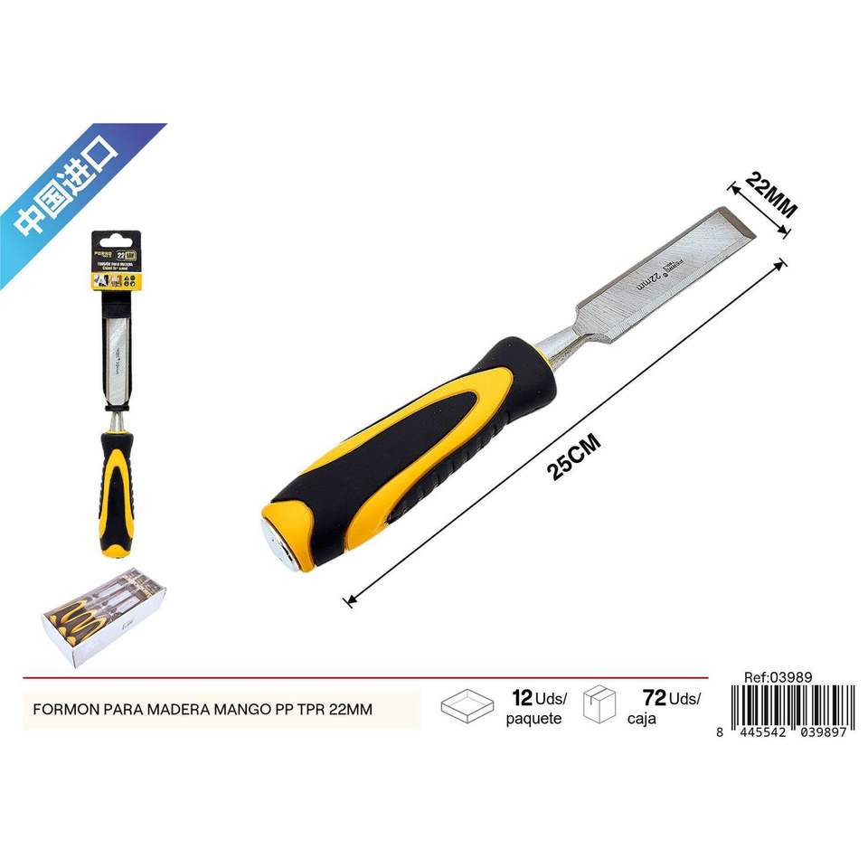 Ciseau à bois de 22mm avec manche en acier PP + plastique TPR pour la sculpture sur bois pour outils de bricolage