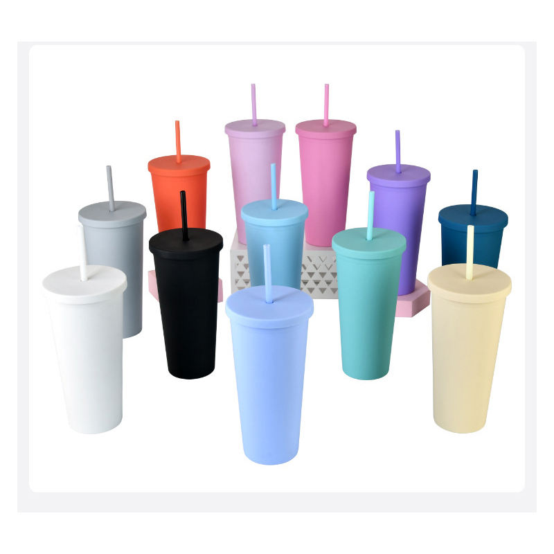 22oz Colored Acrylic Reusable Cups with Lids and Straws Double Wall Matte Plastic Bulk Tumblers