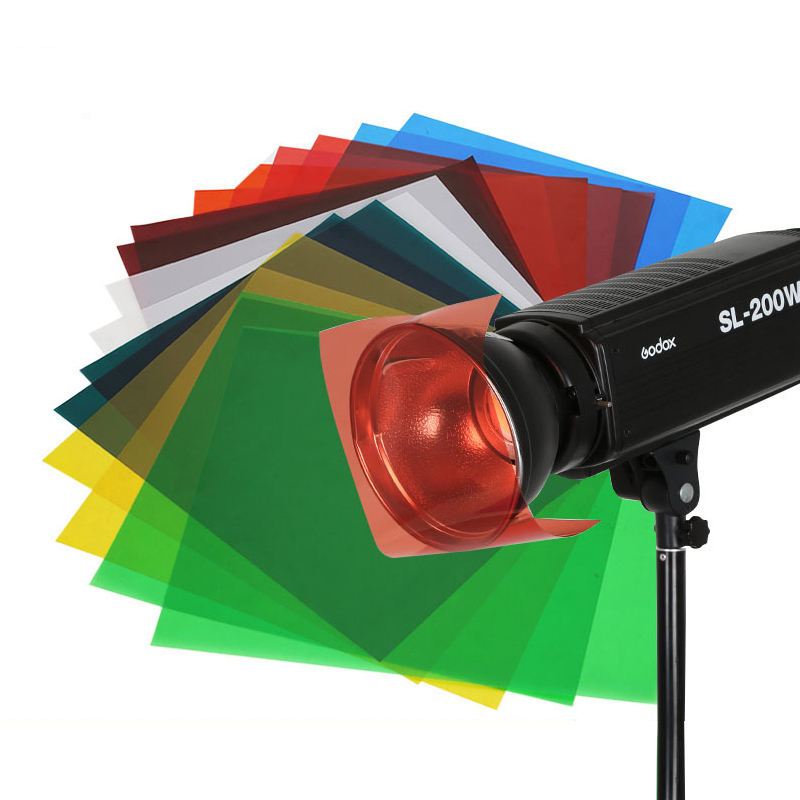 Ensemble de 16 gels de correction de couleur 22x24cm, papier filtre couleur, haute transmission de la lumière, léger, accessoires de studio photo