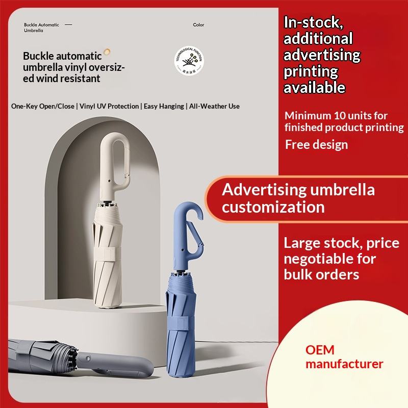 Parapluie publicitaire/cadeau pliant automatique à trois volets avec boucle annulaire de 23/27 pouces, double pliage, résistance au vent accrue