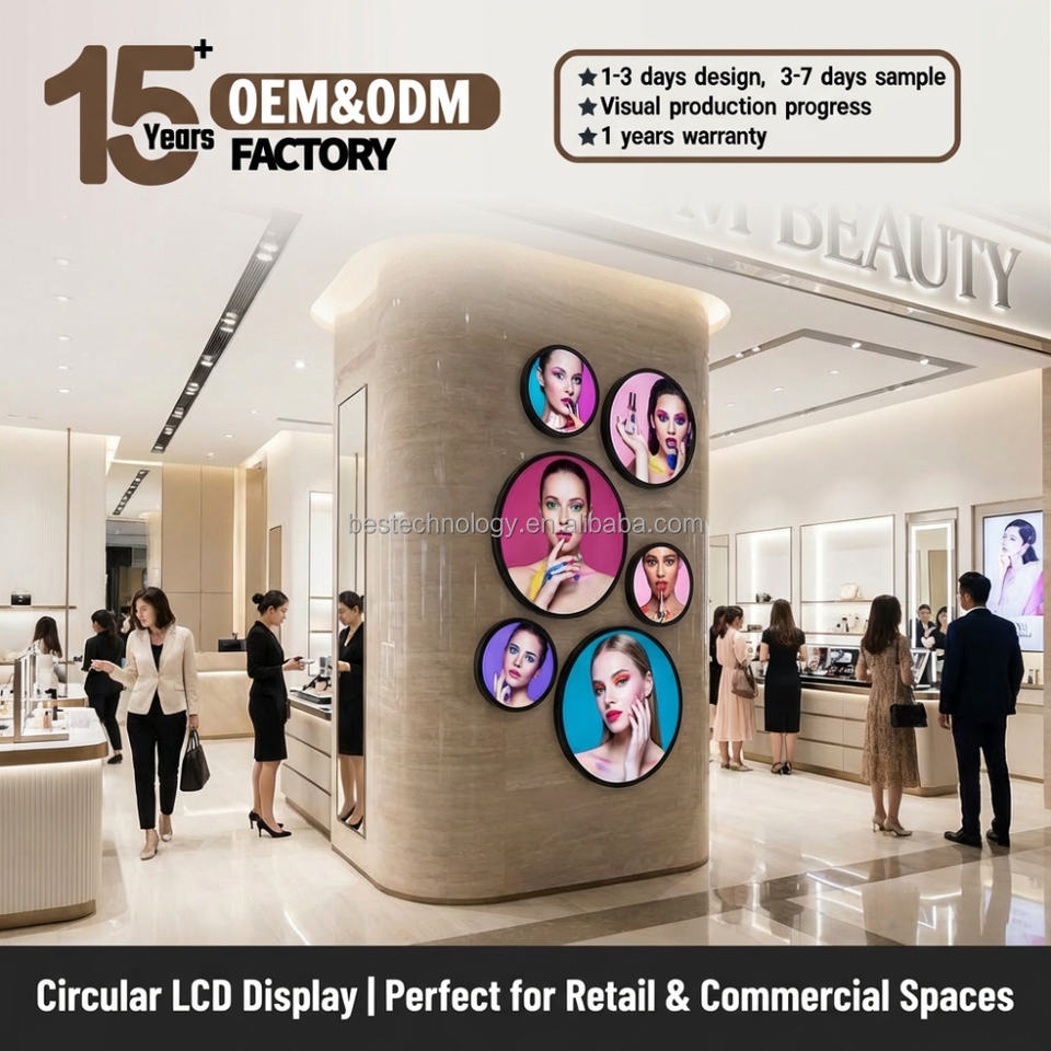 Écran d'affichage numérique LCD rond de 23,6 pouces, 1280x1280, 700 nits, écran circulaire Android, OEM ODM Factory