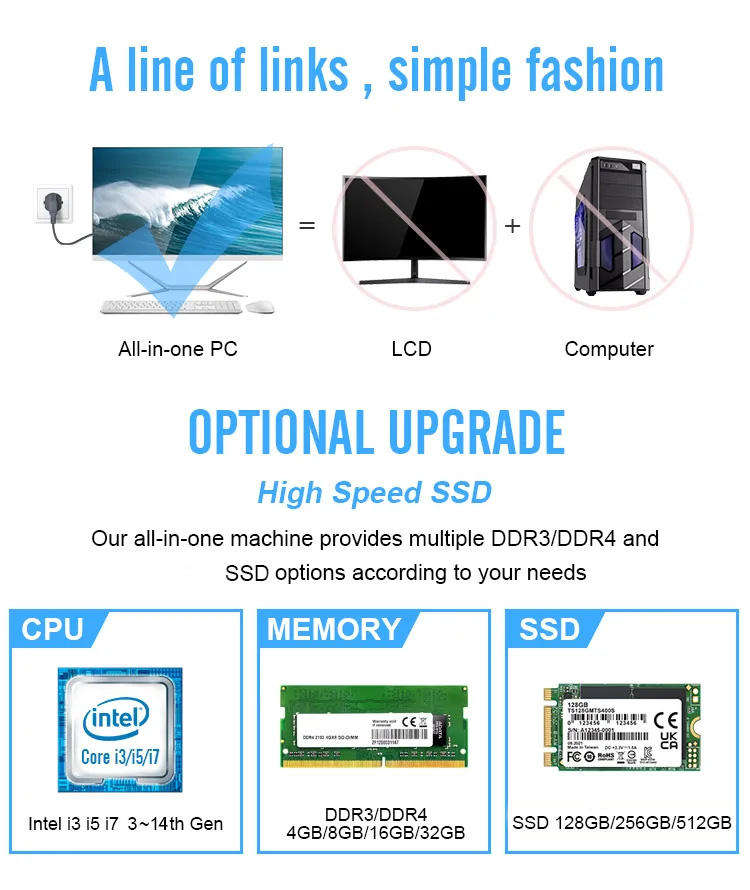 23.8" Led Lcd Aio Pc Intel Core I3/i5/i7 Business Gaming Barebone Desktop With Ddr4 Ram and Ssd