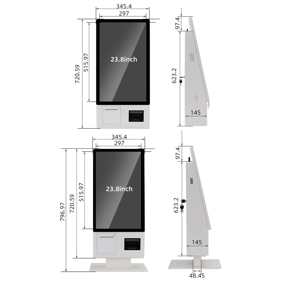 Support de terminal de point de vente de 23,8 pouces, support de sol, KFC, McDonald's, kiosque de commande de nourriture, kiosque de paiement, restaurant, type mural