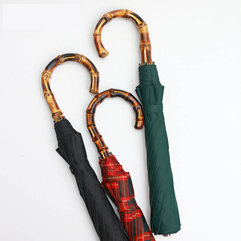 Nom:3 plis 10 côtes pliant le parapluie en bambou accroché de poignée