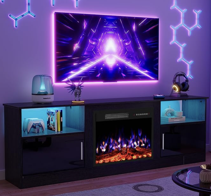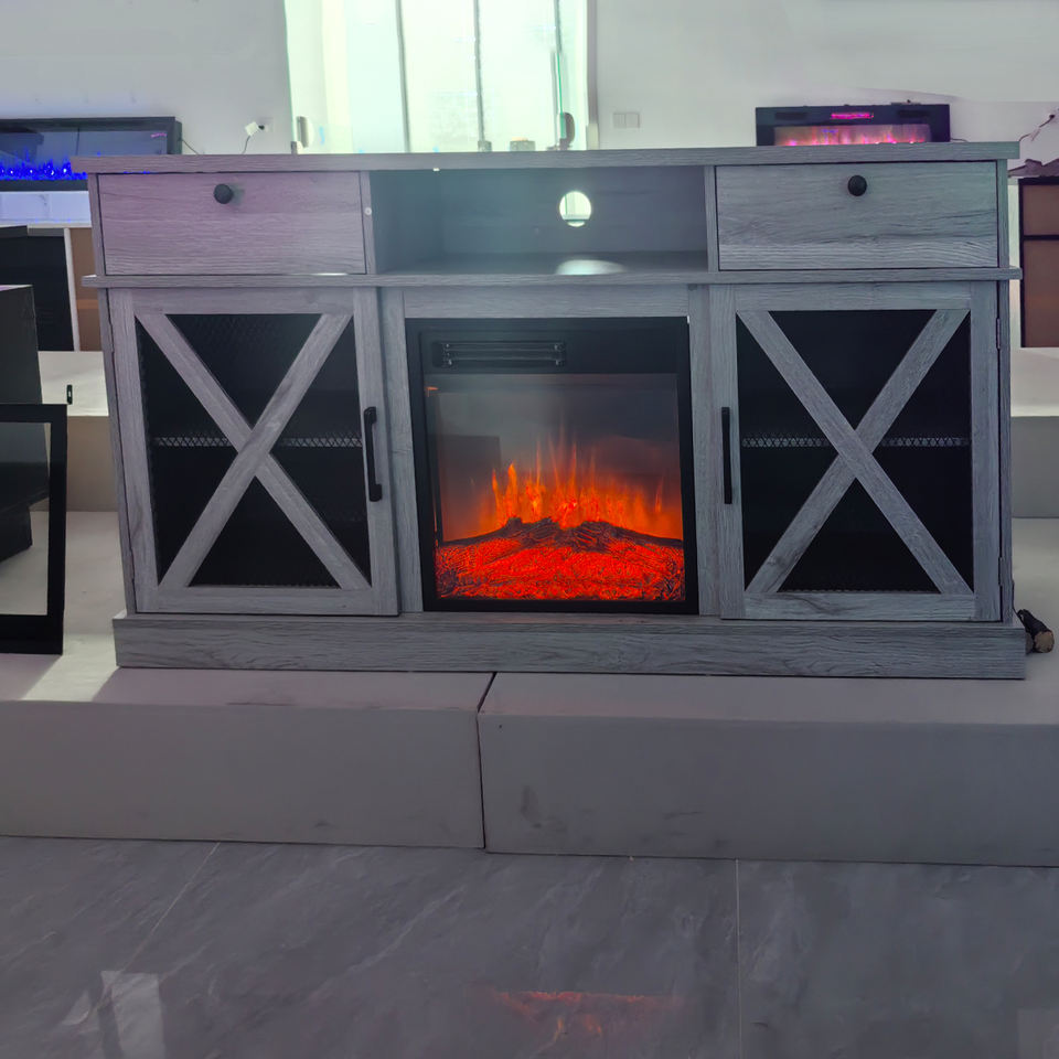 23" Remote-Controlled Manual-Button Indoor Electric Fireplace 72" TV Stand Wood Flame Color Option Freestanding Household