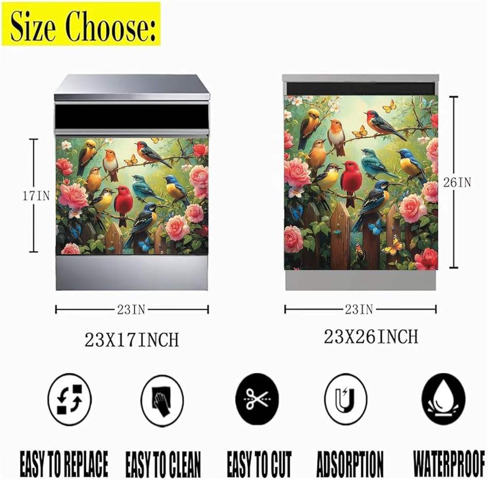 23 "X 26" autocollant magnétique pour lave-vaisselle jardin oiseaux colorés aimant pour lave-vaisselle couverture de porte papillons autocollant magnétique pour lave-vaisselle