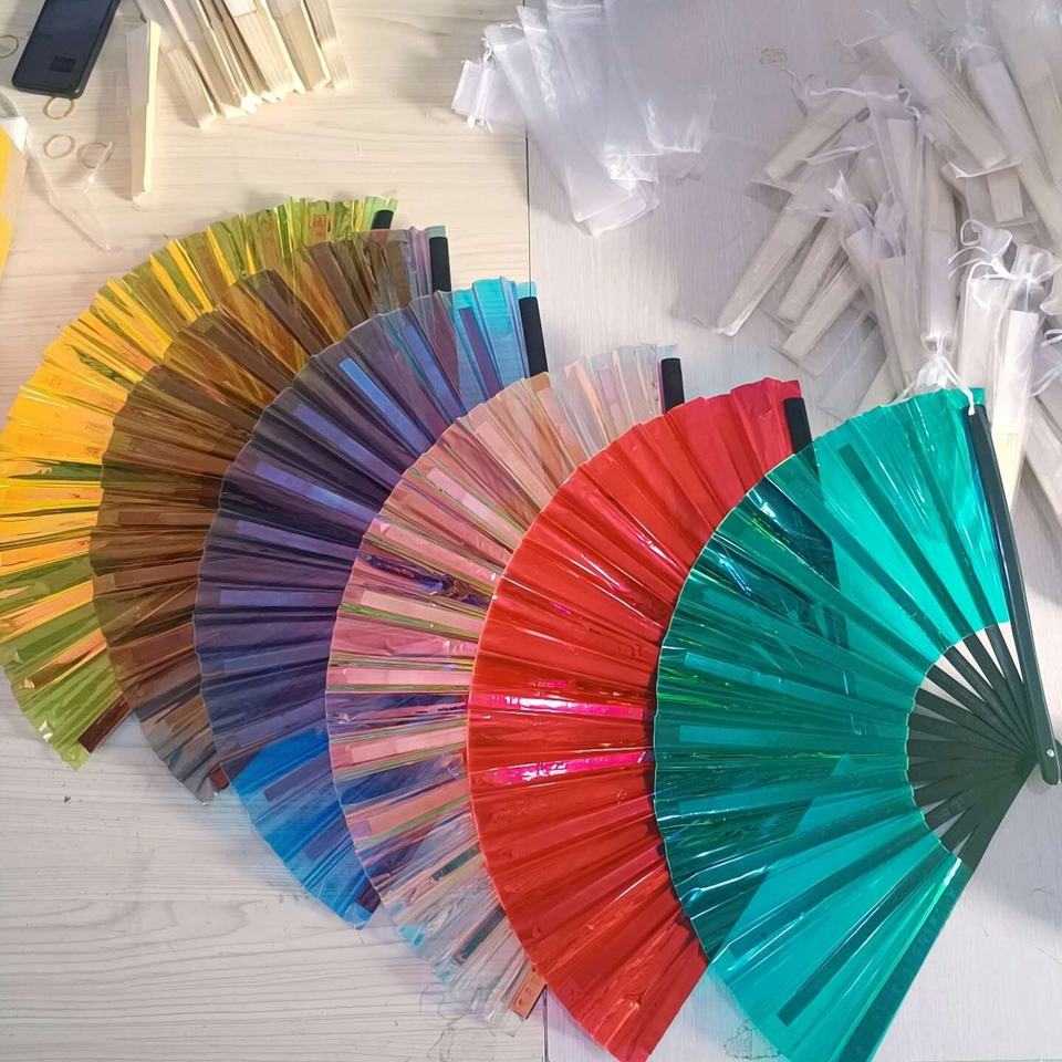Éventail à main Kungfu portable de 23cm avec côtes en bambou sculptées pour la promotion de soirées dansantes Éventail pliant avec impression de logo personnalisé