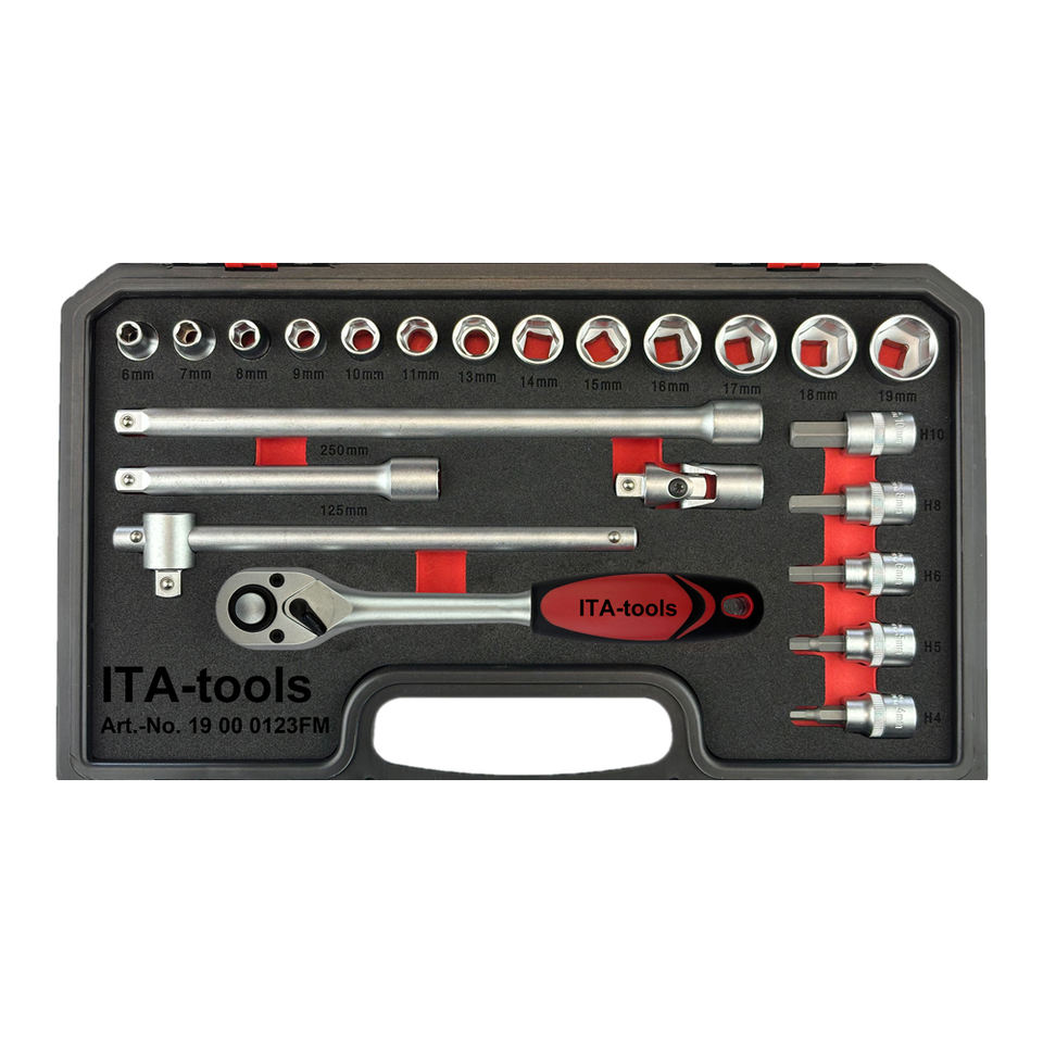 Kit d'outils de clé à douille de 3/8 pouces personnalisé de 23 pièces avec barre d'extension et source d'alimentation manuelle universelle du fournisseur de Taiwan