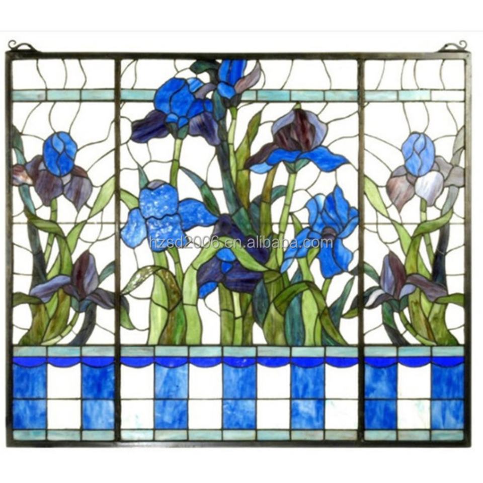 Panneau de vitrail Tiffany rectangulaire 24''*16'' à motif floral en feuille de cuivre pour fenêtre ou mur avec chaîne