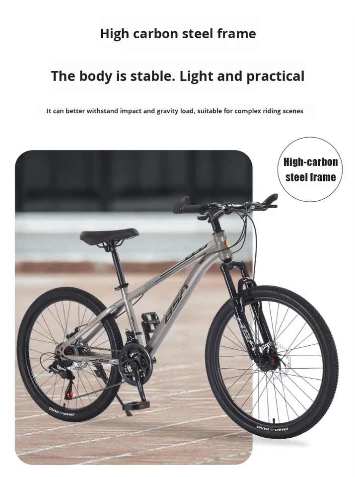 Vélo de montagne 24/26/27,5 pouces pour adultes, VTT tout-terrain 21 vitesses, freins à disque, pour étudiants, hommes et femmes, cadre en acier à haute teneur en carbone, cadre sans queue