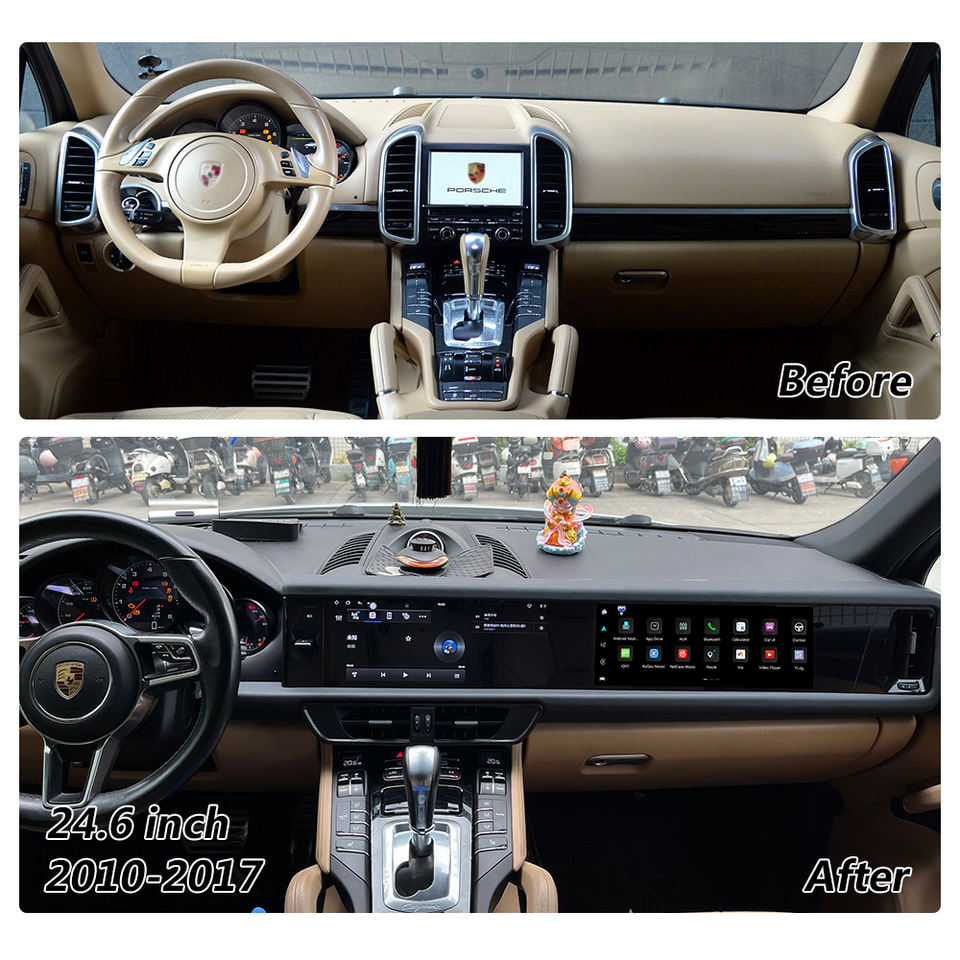 Kit de mise à niveau pour voiture avec double écran 24,6 pouces, console numérique multimédia Android pour Porsche Cayenne 2011-2017, panneau de tableau de bord