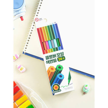 24 Clover-Shaped Colored Pencils Watercolor Pencils for School Hexagonal Pattern Made of Plastic and Paper