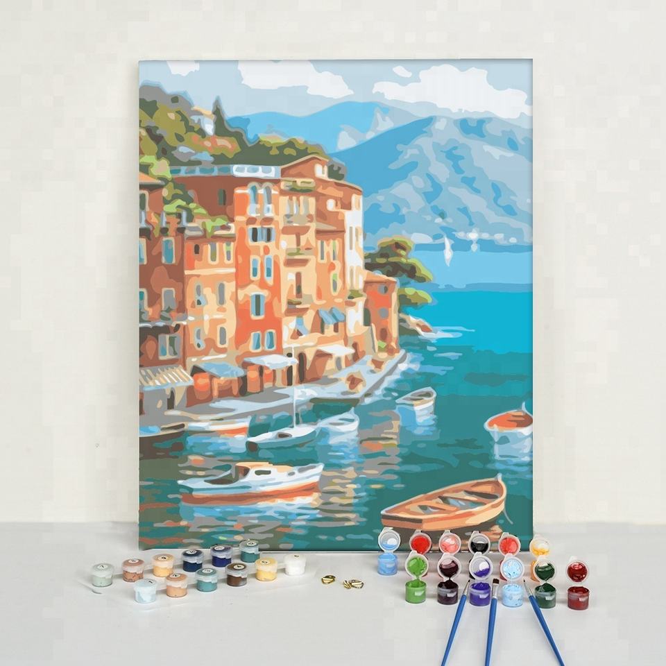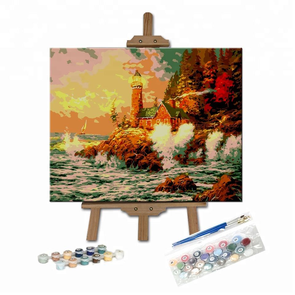 Peinture par numéros sur toile, paysage encadré, calligraphie, 24 couleurs, 40x50, acrylique