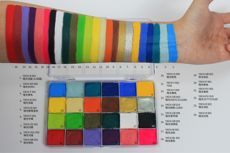 Nom du produit:Peinture pour le visage et le corps à base d'huile, imperméable, 24 couleurs