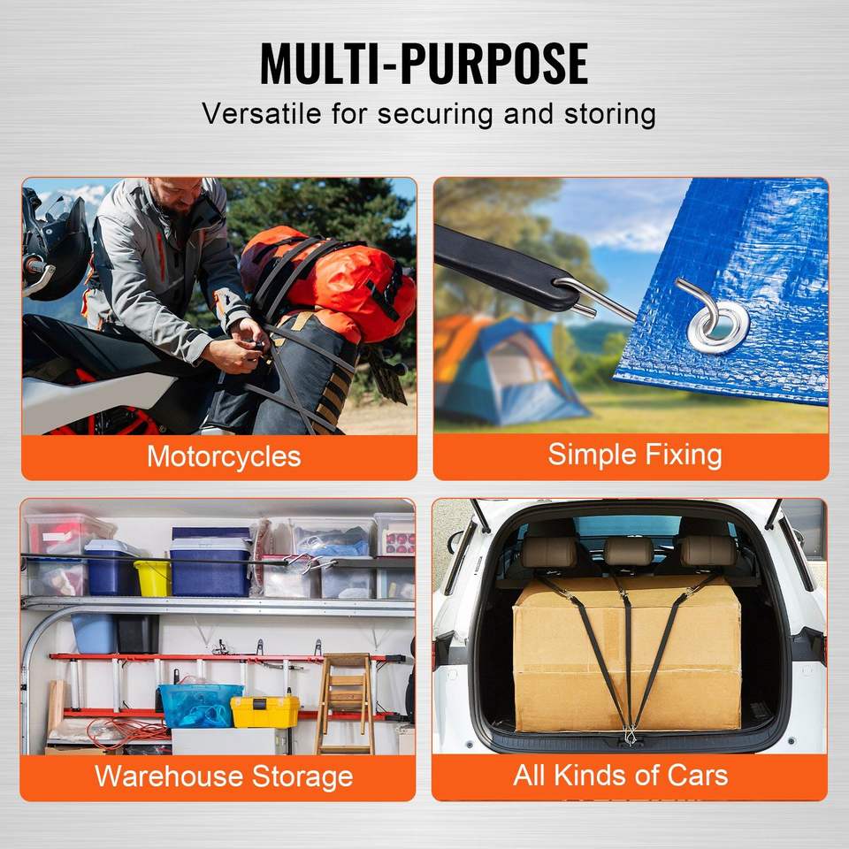 Cordon élastique plat de 24 pouces, 10 pièces, avec crochets en S en acier, sangles élastiques robustes de 20 mm pour le contrôle du fret, pour camions et bâches