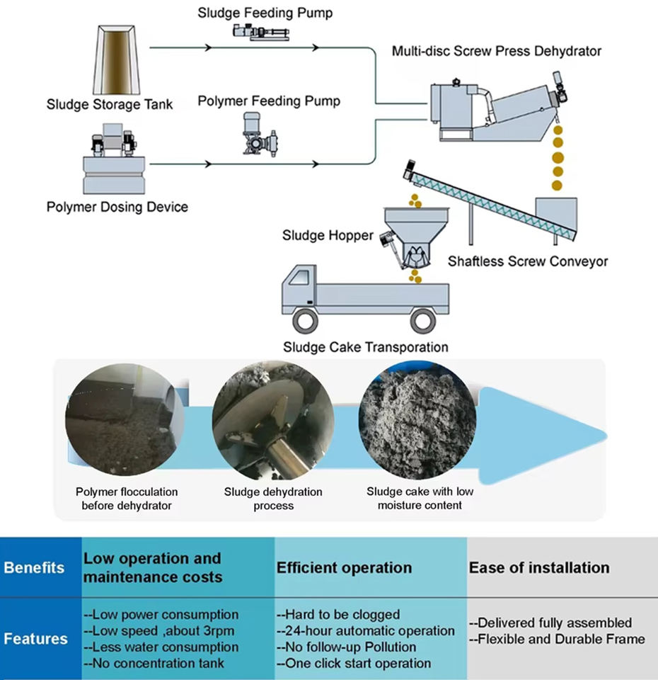 Utilisation:Asséchage en spirale empilé de boue de fonctionnement continu de 24 heures