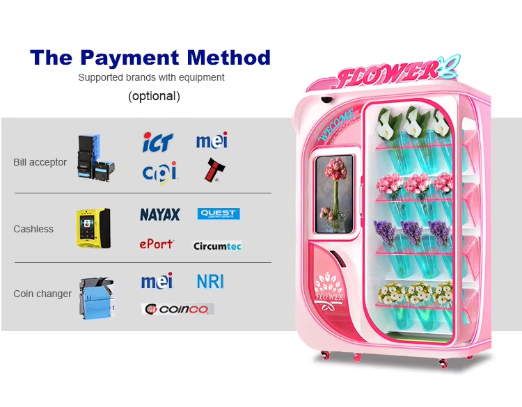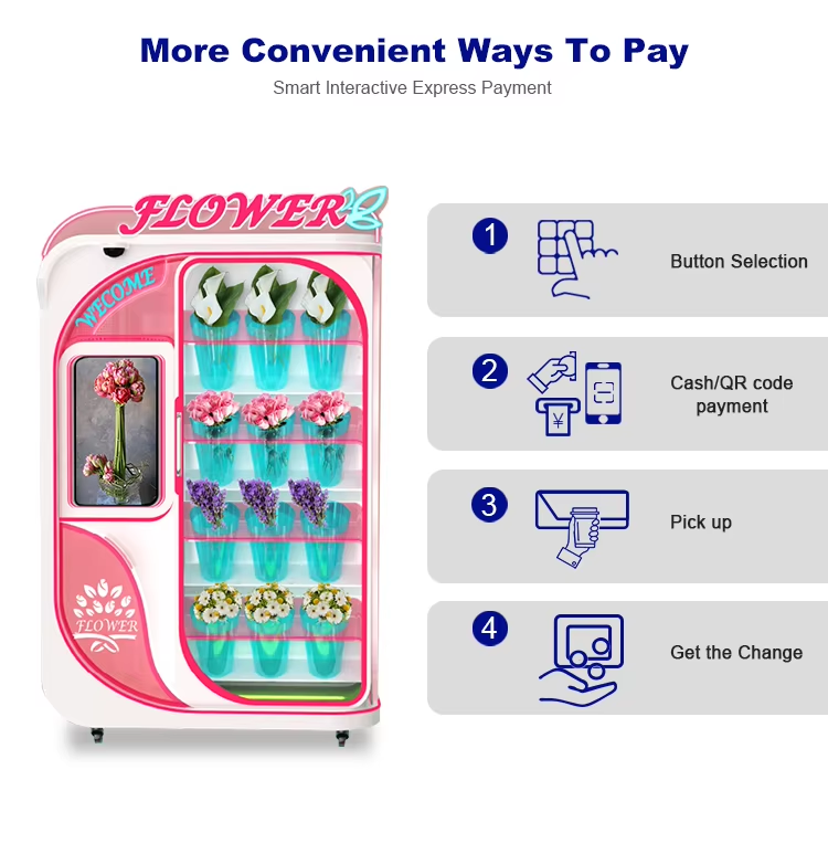 Distributeur automatique de fleurs fraîches 24h/24, distributeurs automatiques avec réfrigérateur à température contrôlée pour les stations de métro, les centres commerciaux