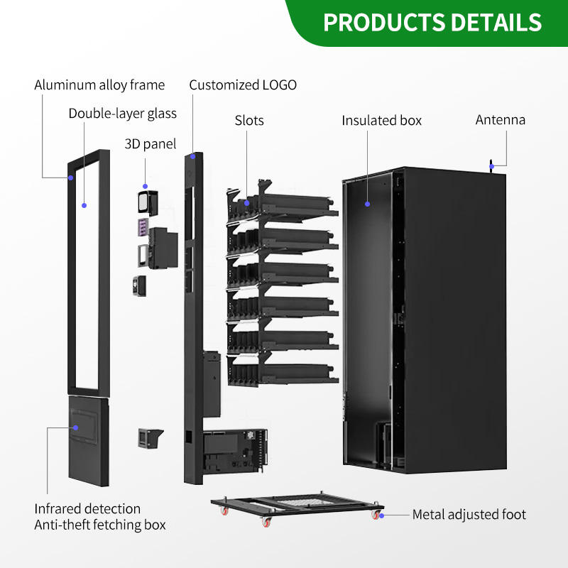 Distributeur automatique de boissons et de collations à service libre 24h/24, vente flash, 6 rangées, petit écran tactile, réfrigérateur à soda froid, SDK