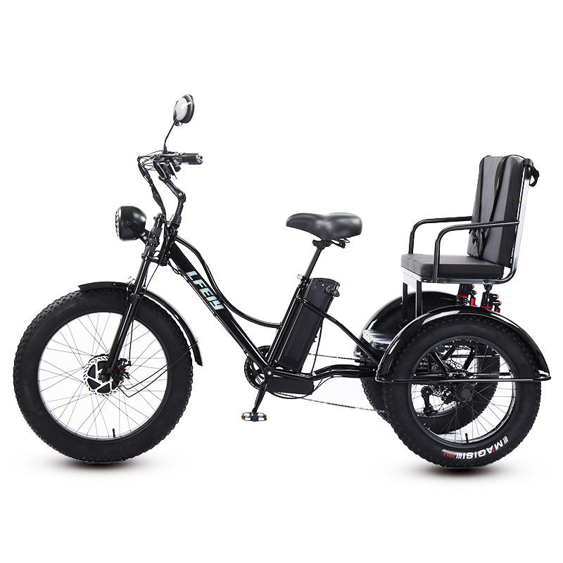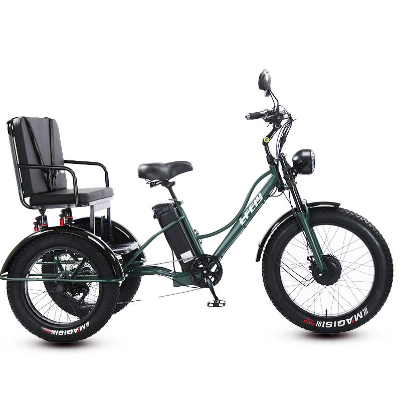 Vélo électrique hybride à trois roues avec moteur arrière sans balais de 750 W, 24 pouces, en stock, deux sièges, autonomie de 60 km, pour personnes âgées et enfants, prix