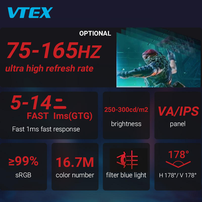 75Hz/100Hz/12oHz/180hzFréquence de rafraîchissement