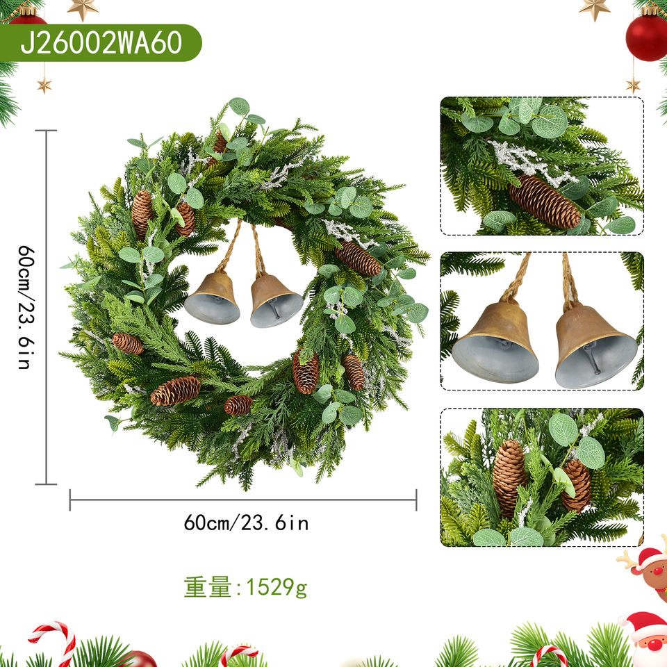 Nom de l'article:Couronne de Noël avec pommes de pin, clochettes et feuillage artificiel