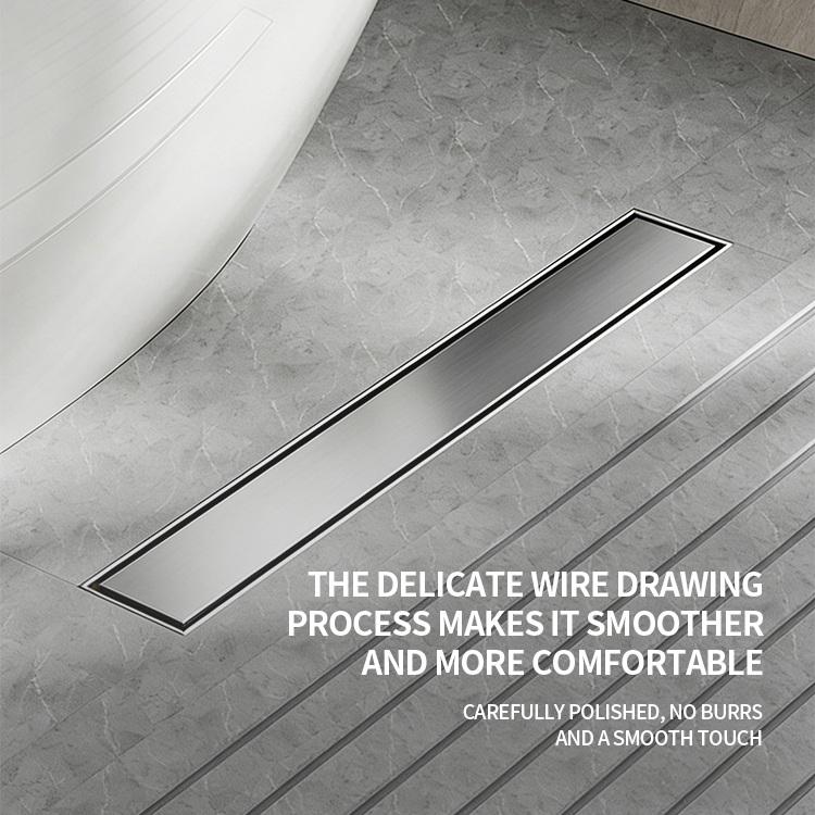 Drain de douche linéaire moderne en or brossé de 24 pouces, drain de sol rectangulaire pour salle de bain, drain de toilette poli brossé
