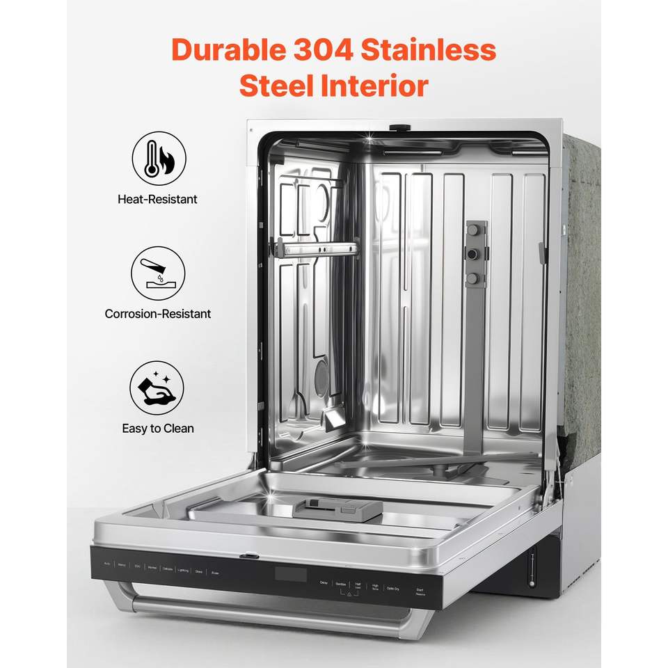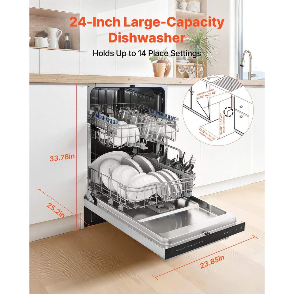 Lave-vaisselle encastrable de 24 pouces, cuve en acier inoxydable, 14 couverts, 8 programmes de lavage, 23,82 x 25,2 x 33,78 pouces, faible niveau sonore