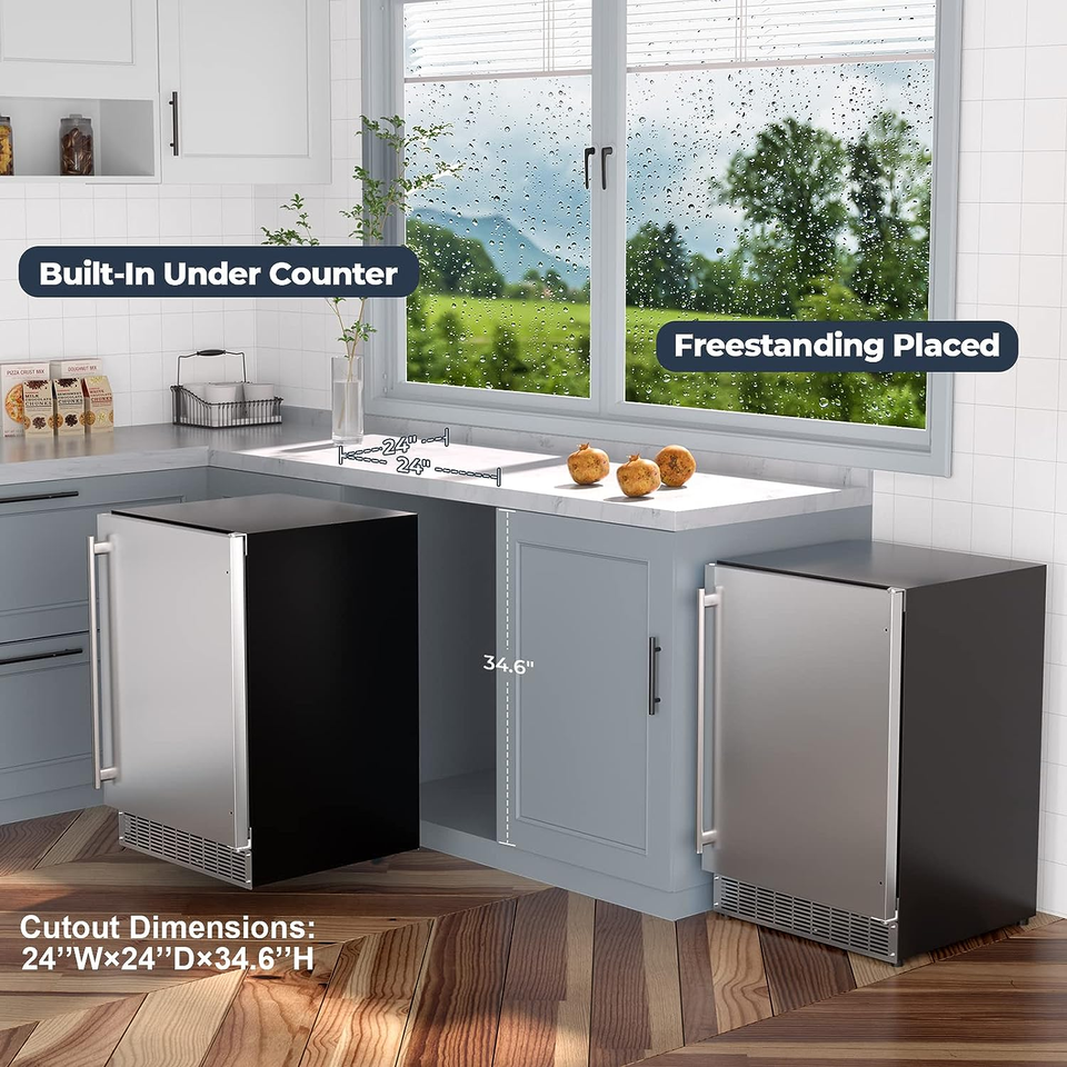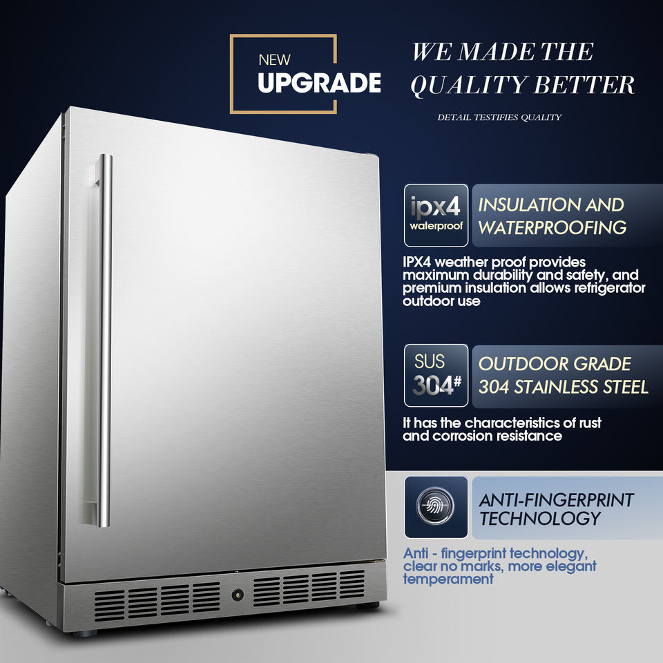 24 Inch Built-in Outdoor Refrigerator/Undercounter Beverage Fridge/Freestanding Stainless Steel Refrigerator